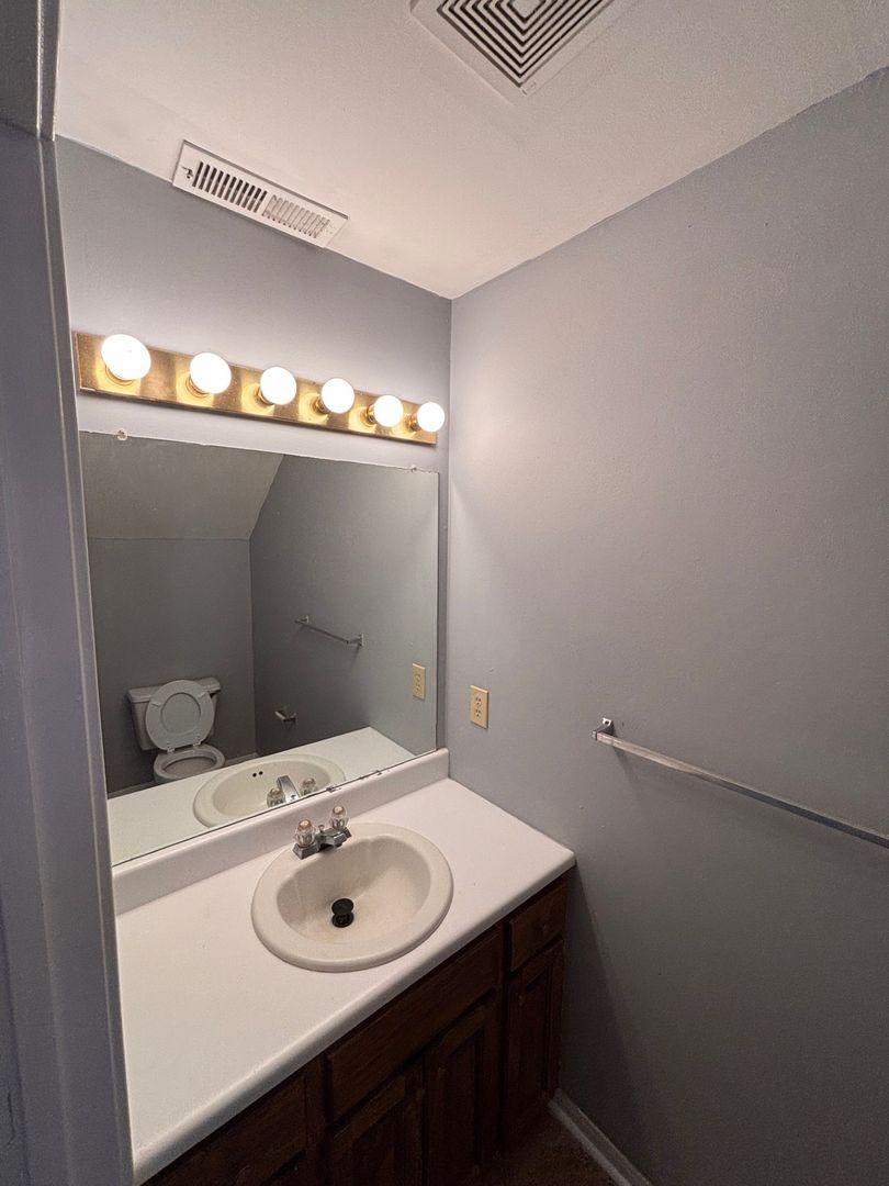 This is a spacious 2 bedroom, 2-1/2 bath, town home style apartment - 2 stories - with both bedrooms on the 2nd floor. Each bedroom has an attached full bathroom. The downstairs features the entry-way, family room, 1/2 bath, large kitchen/dining combination, large laundry room and a back door that leads onto a concrete patio with access to a lockable outdoor storage room. There is grass area off of the patio. The front of this apartment has a nice covered porch with landscaping and an outdoor lantern pole light. Parking is on-site. Each apartment is allocated with 2 parking spaces.